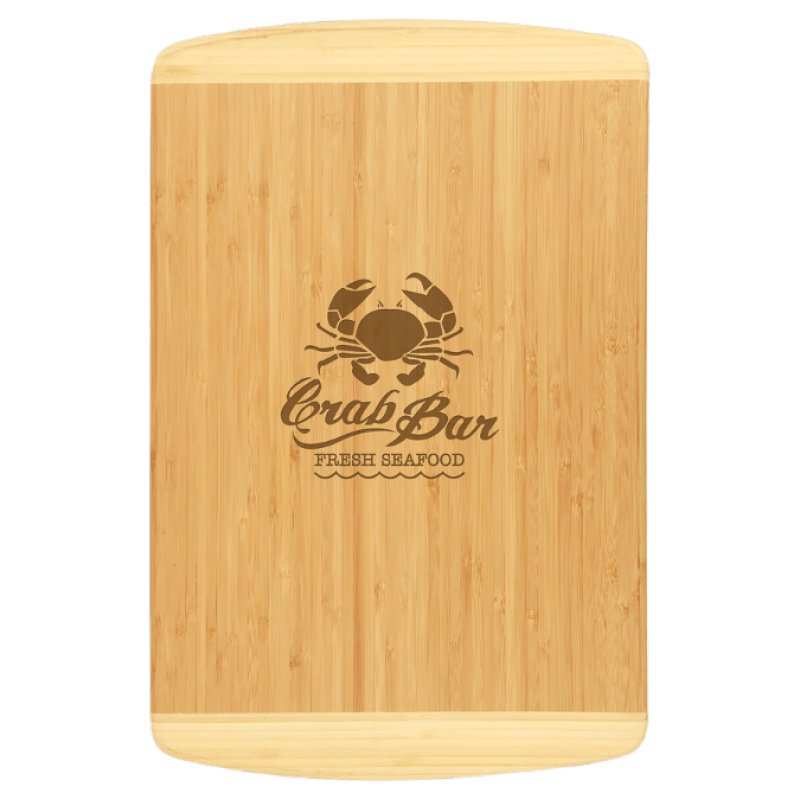 Beautifully crafted 18″ x 12″ natural bamboo cutting board. Gorgeous two tone coloring and can be laser engraved for personalization.
